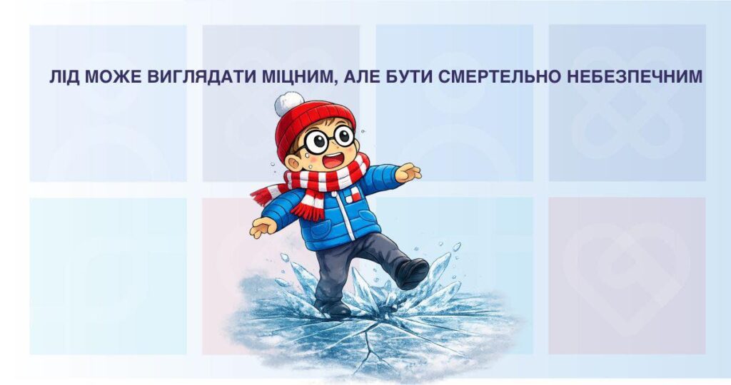 Тонкий лід – це не завжди той, що тріщить або ламається під ногами. Небезпека полягає саме в його непередбачуваності. Особливо ризикованими є ділянки поблизу берегів, очерету, місць із течією або впадіння струмків.